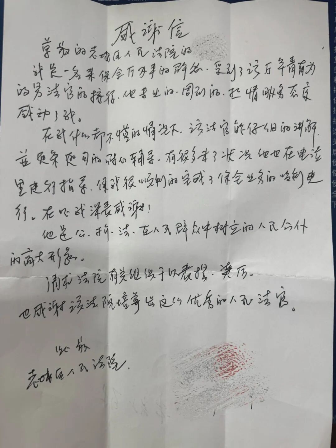 近日,我院收到一封来自案件当事人的感谢信,信中对我院在诉前保全工作中展现出的专业效率与司法温度表示高度认可。